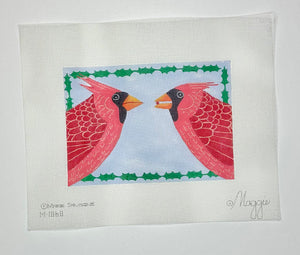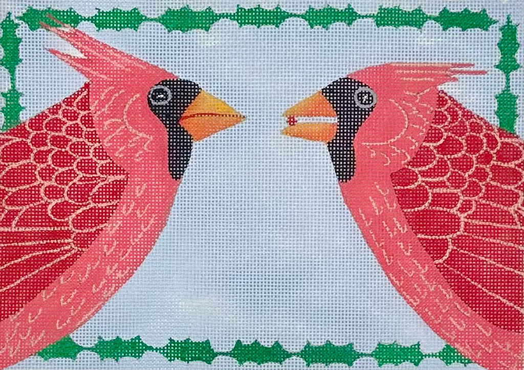 "Cardinals & Holly" painted canvas by Maggie Co, artwork by Marie Samsone