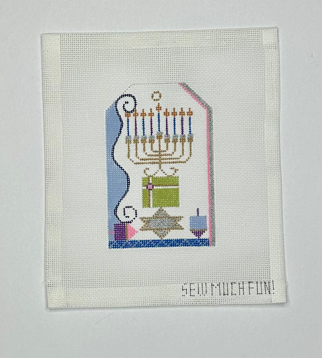 "Chanukah Menorah Tag" painted canvas by Sew Much Fun