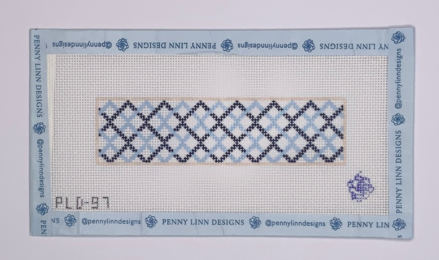 "Double Blue Lattice Key Fob" painted canvas by Penny Linn