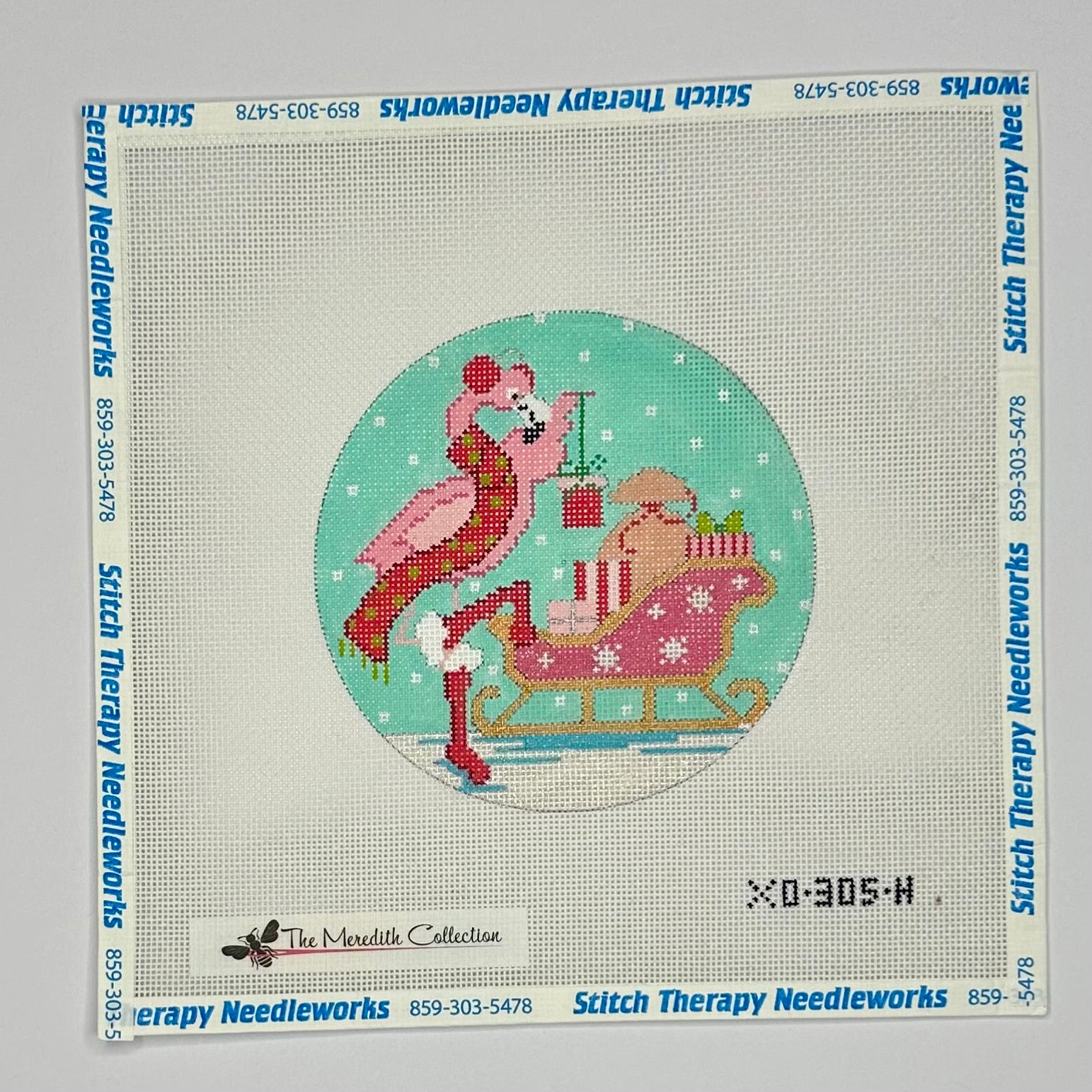 "Flamingo with Sleigh" painted canvas by The Meredith Collection