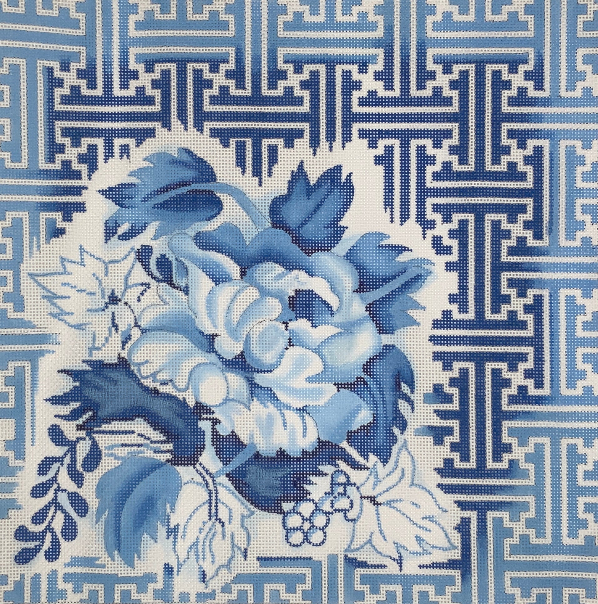 "Floral Fretwork Chinoiserie" painted canvas by Associated Talents