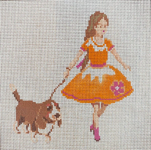 "Girl with a Dog" painted canvas by A Stitch in Time