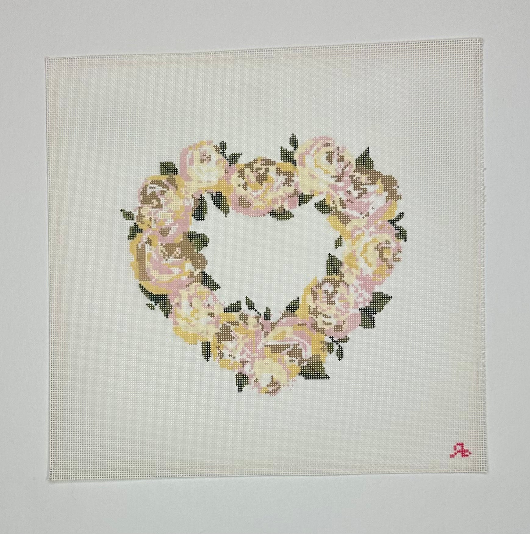 "Heart Floral Wreath" painted canvas by Rachel Barri