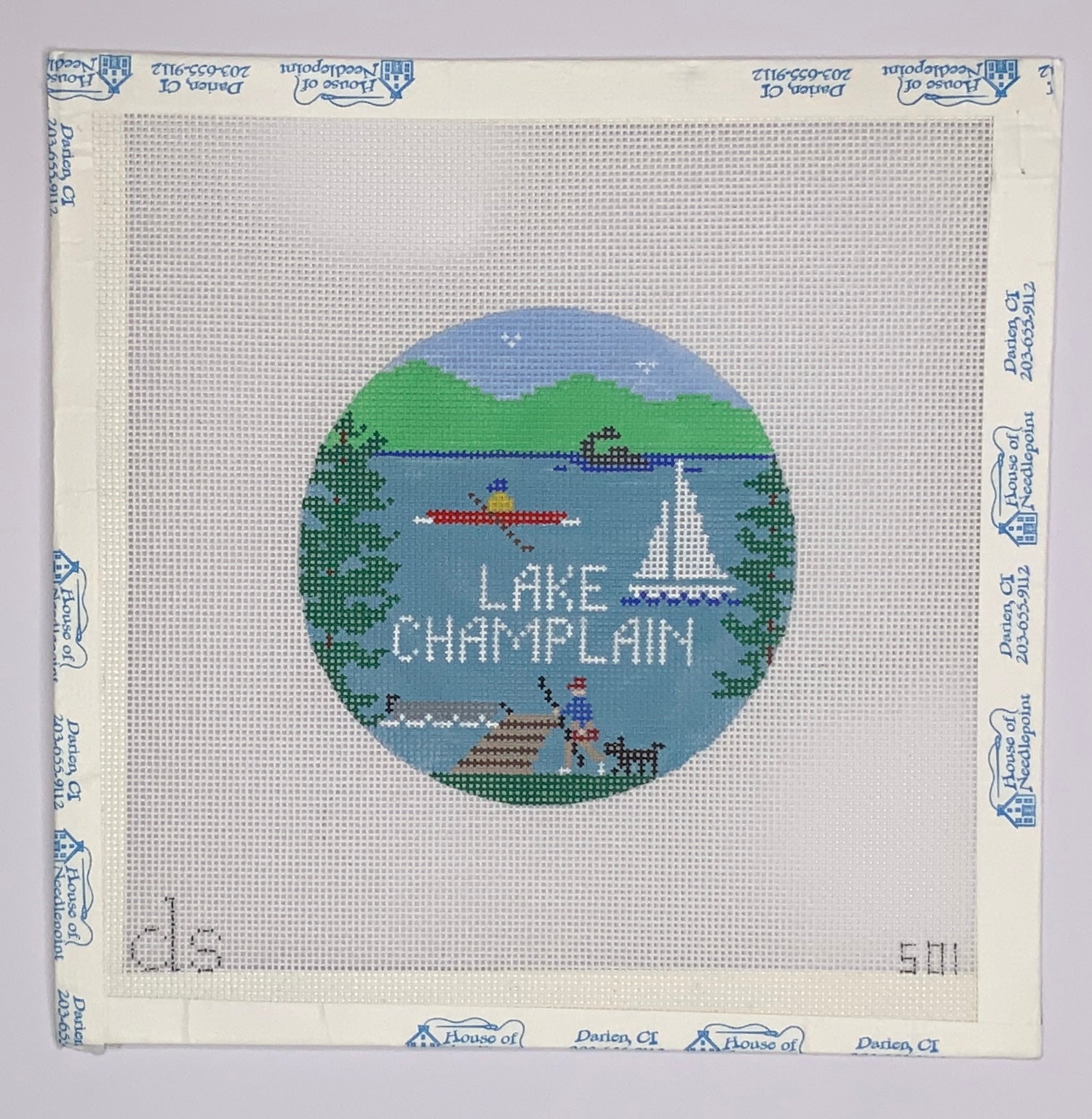 "Lake Champlain Round" painted canvas by Doolittle Stitchery