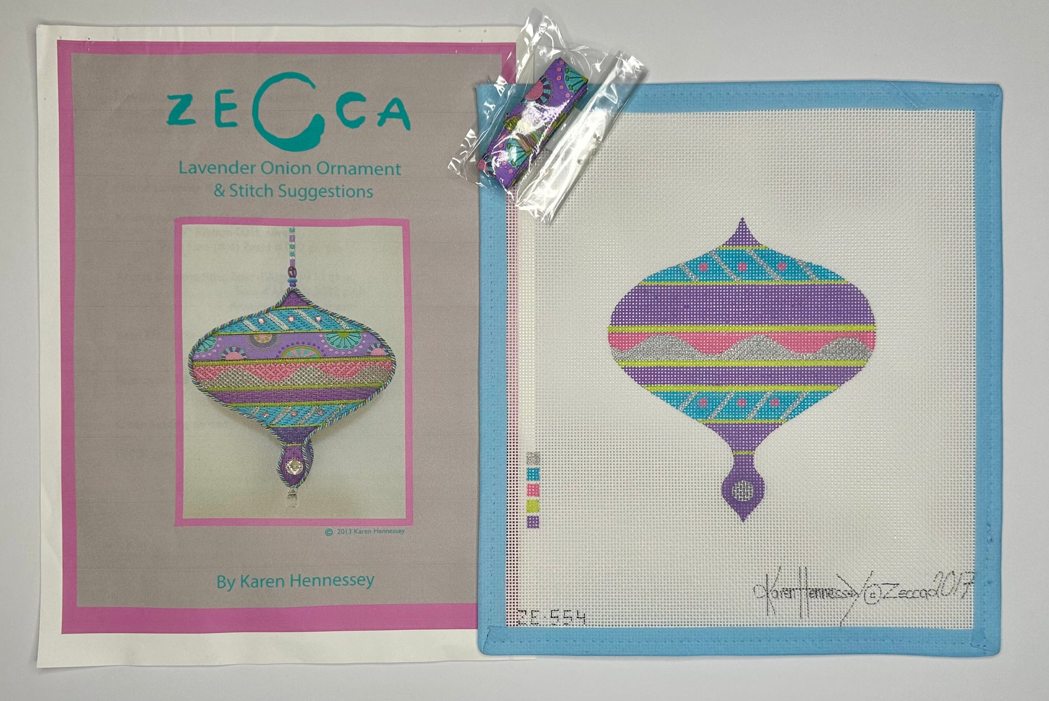Includes stitch guide by the artist and ribbon shown