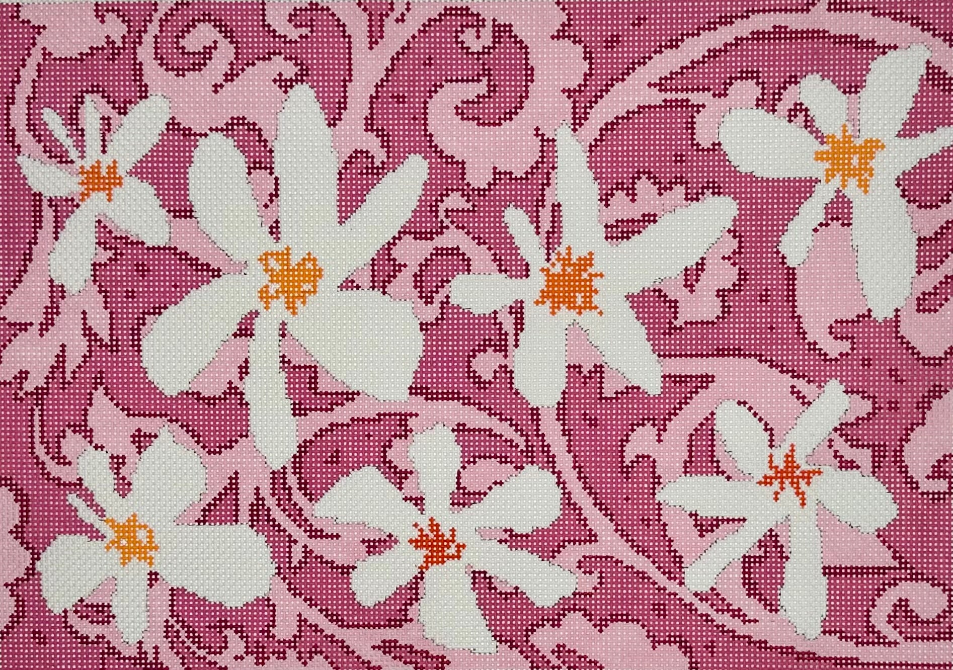 "Pink w/ White Blossoms" painted canvas by Pippin