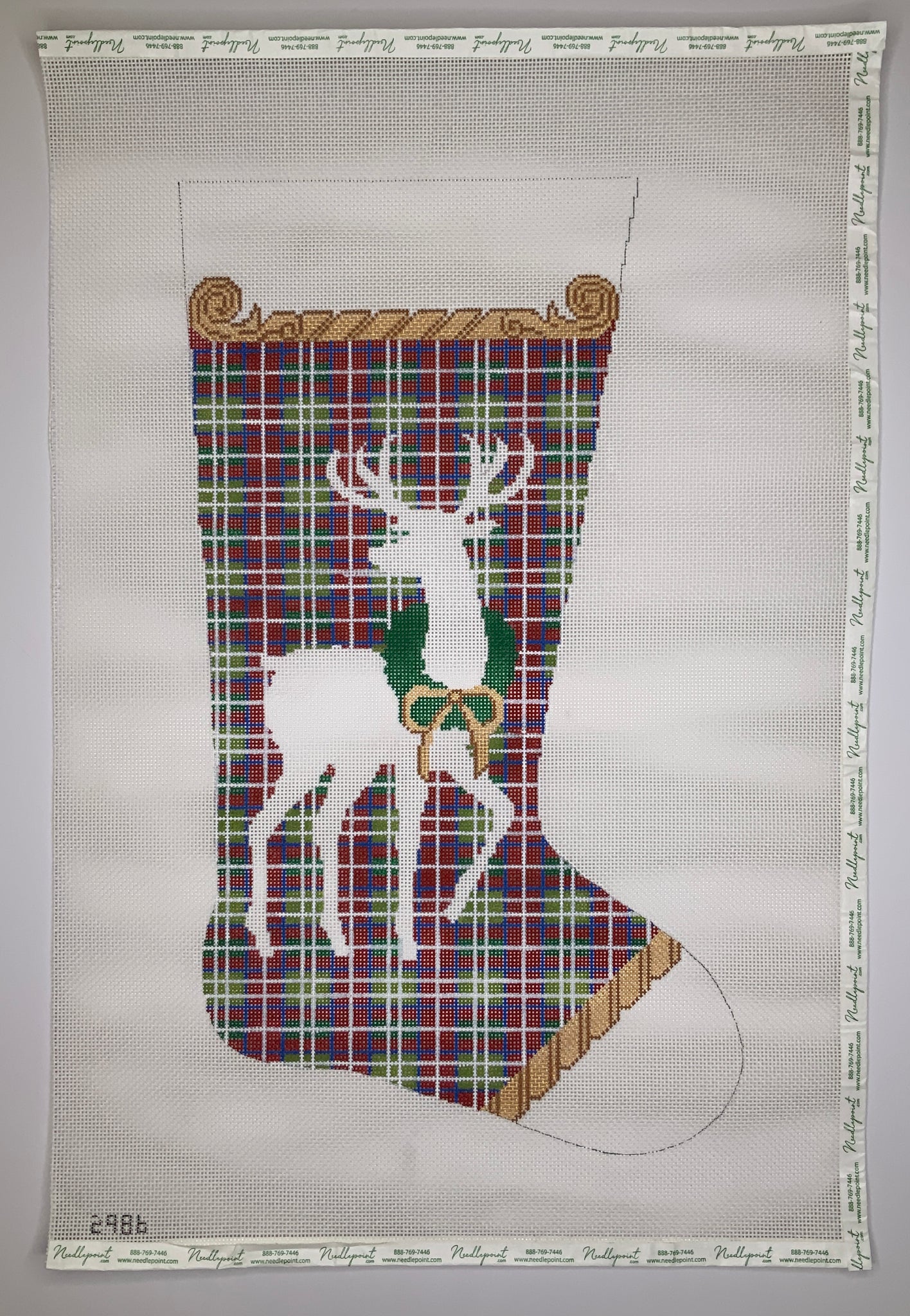 "Reindeer on Plaid Stocking" painted canvas by Alice Peterson