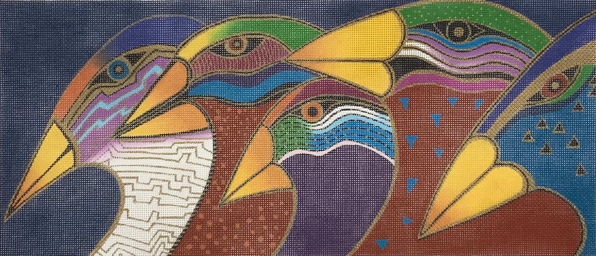 "Sky Spirits" painted canvas by Danji, artwork by Laurel Burch