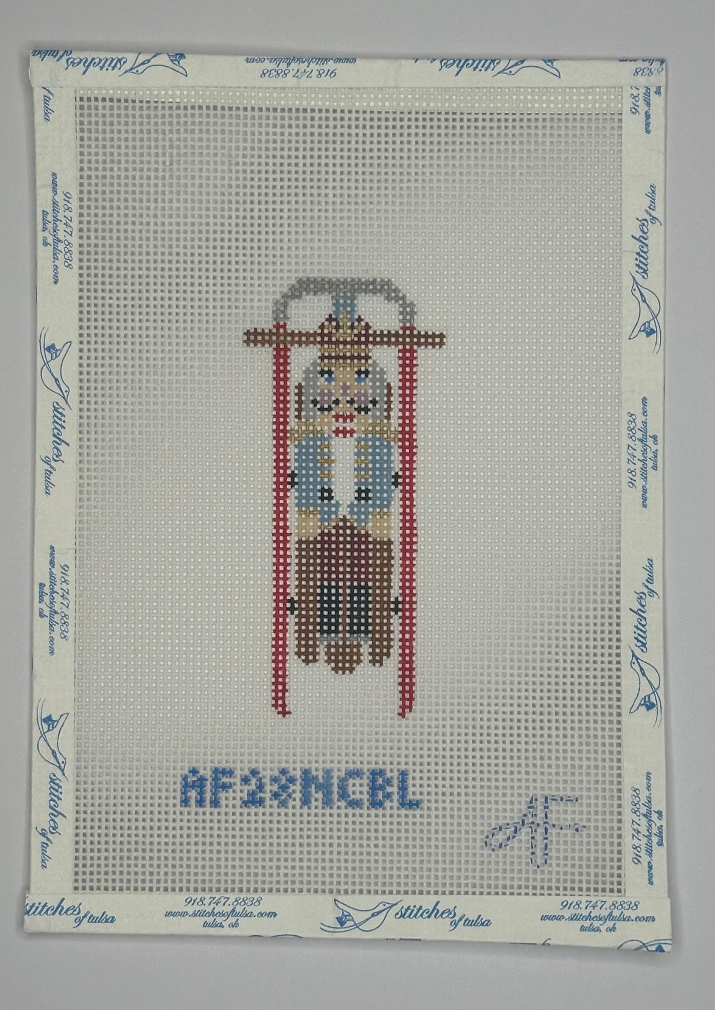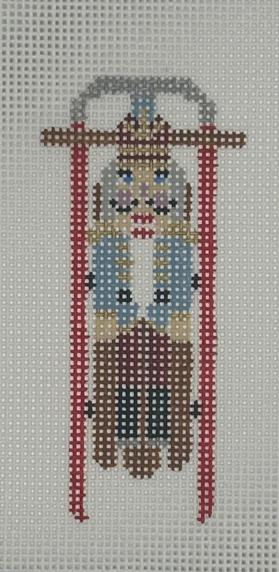 "Sled with Blue Nutcracker" painted canvas by Anne Fisher
