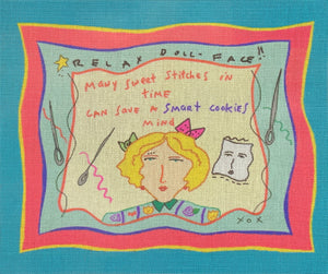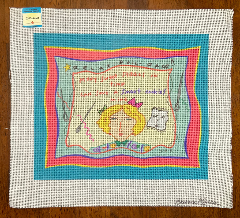 "Sweet Stitches" printed canvas by Barbara Elmore, artwork by Nancy Drew