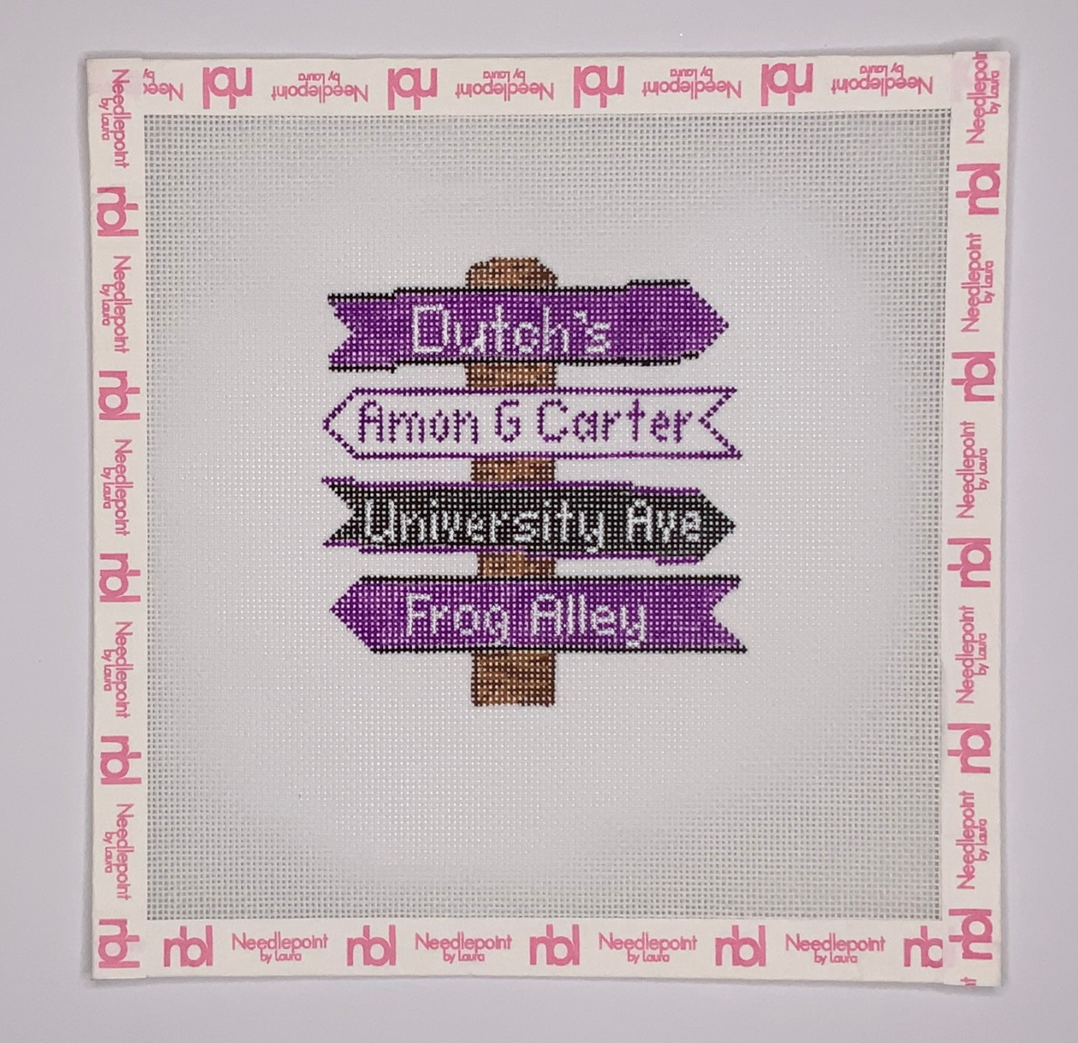 "TCU College Icon Destination Sign" painted canvas by Needlepoint by Laura