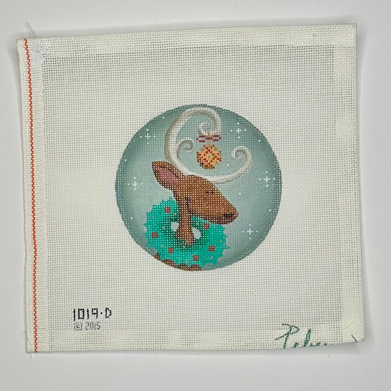 "Wreath Reindeer Round" painted canvas by Rebecca Wood